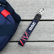 Deze sleutelhanger is gemaakt van stevig geweven polyester, wat zorgt voor een langdurige kwaliteit en een luxe uitstraling. De robuuste metalen haak biedt extra veiligheid en gemak, zodat je je sleutels altijd bij de hand hebt.
