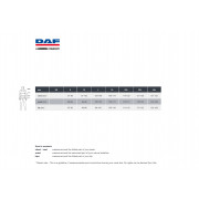Logo: DAF badge op de rechtermouw, borduursel op de rechter ondermouw, DAF logo op de linkerschouder, DAF X op de borst.
